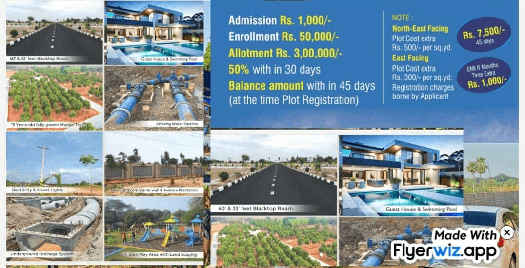 40 ft and 33 ft CC roads with complete electrical and drainage infrastructure.